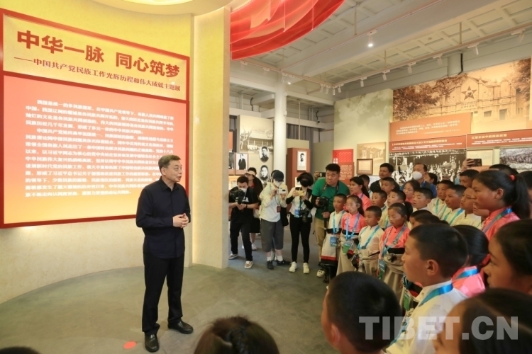 圖為潘岳向孩子們講述各民族有志青少年投身革命事業(yè)的故事 攝影:列來(lái)拉杜