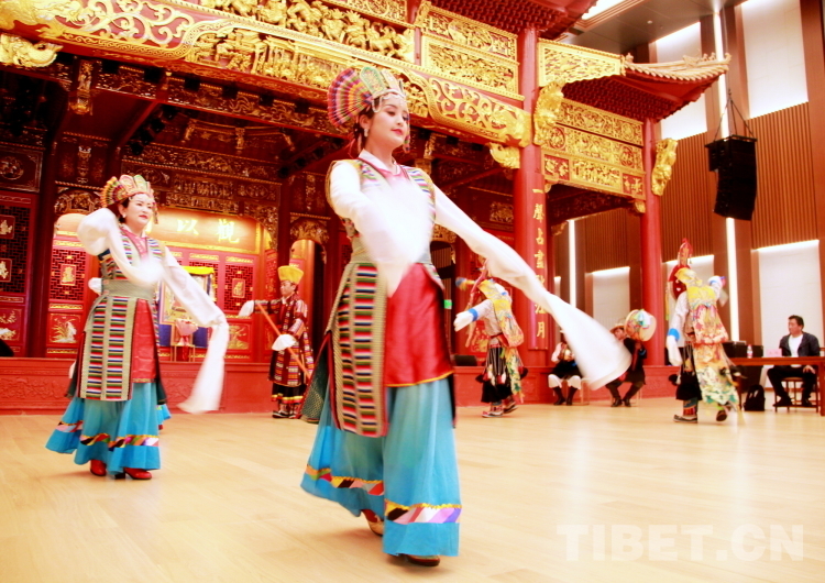 西藏藏劇團(tuán)副團(tuán)長米瑪普赤就藏戲的起源、藏戲的特點、藏戲的流派等進(jìn)行了詳細(xì)介紹。伴隨著雄渾響亮的鼓鈸聲,西藏自治區(qū)拉薩市城關(guān)區(qū)娘熱民間藝術(shù)團(tuán)的藝術(shù)家們表演了藏戲開場《溫巴頓》、藏戲唱腔《朗薩雯波》之貢桑德慶唱腔、拉薩囊瑪《吉白尼瑪》、嘎爾《郎卓》等經(jīng)典片段。精美的服飾、鏗鏘的唱腔、緊湊的故事情節(jié)……贏得了與會嘉賓的連連贊嘆與陣陣掌聲。