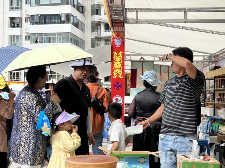 牦牛肉、酥油、酸奶、奶渣等畜牧業(yè)產(chǎn)品;青稞、蕎麥、糌粑、核桃油等農(nóng)產(chǎn)品;唐卡、服飾、藏醫(yī)藥、木碗等非遺產(chǎn)品等等,各種各樣的特色產(chǎn)品讓人目不暇接,游客們流連于各個展銷點(diǎn)選購心儀的產(chǎn)品,現(xiàn)場已然一幅熱鬧的景象。