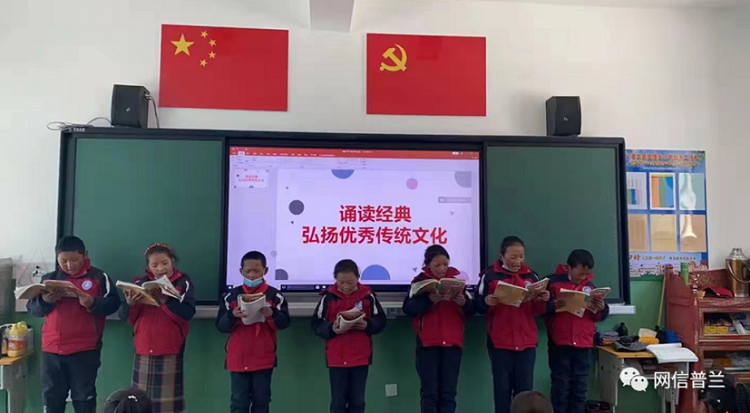 圖為巴嘎鄉(xiāng)小學(xué)舉辦誦讀經(jīng)典活動(dòng) 圖片來(lái)源:網(wǎng)信普蘭