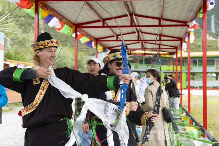 圖為澳大利亞籍運(yùn)動(dòng)員Oliver Anderson正在體驗(yàn)藏族傳統(tǒng)體育項(xiàng)目響箭 攝影:趙振宇