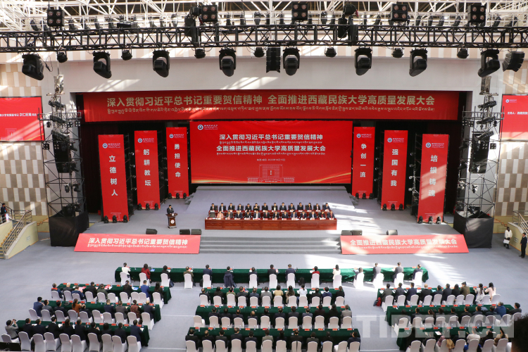 圖為深入貫徹習(xí)近平總書記重要賀信精神、全面推進(jìn)西藏民族大學(xué)高質(zhì)量發(fā)展大會現(xiàn)場