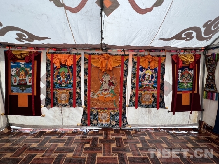 中國西藏網(wǎng)訊 在你印象中,西藏唐卡是怎樣的呢?除了一筆一畫的匠心工筆外,還有一針一線的飛針走線。2023年盛夏8月,記者在西藏日喀則市定結(jié)縣第十七屆夏爾巴旅游文化節(jié)展銷會上采訪時(shí),遇到了難得一見的“珍珠唐卡”。在白帳篷里,一對夫妻正埋頭干針線活,他們端坐在木質(zhì)繡架前一針一線串起珍珠、綠松石、珊瑚等珍貴珠寶,在這熱鬧的集市中顯得格外寧靜。
