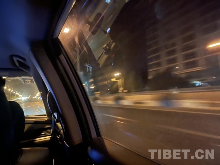 圖為凌晨三點趕往首都機場的車上 攝影:王妍丹
