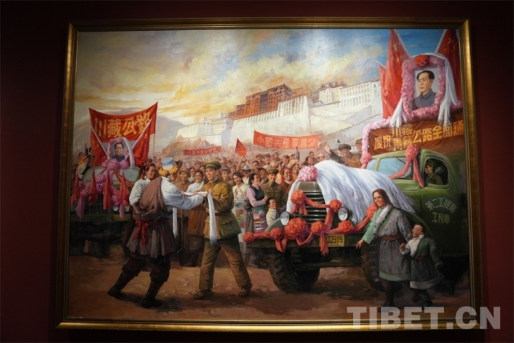 圖為順利會(huì)師紀(jì)念油畫,畫中為慶祝川藏、青藏公路全面通車的歡慶場景 攝影:陳浩力
