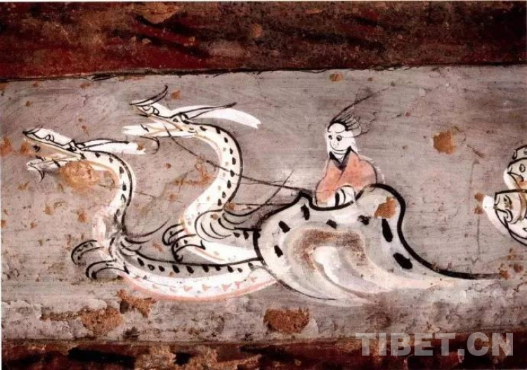 圖為陜西靖邊縣郝灘漢墓壁畫(huà):駕雙龍之車(chē)遨游天國(guó)圖,距今約2000年。