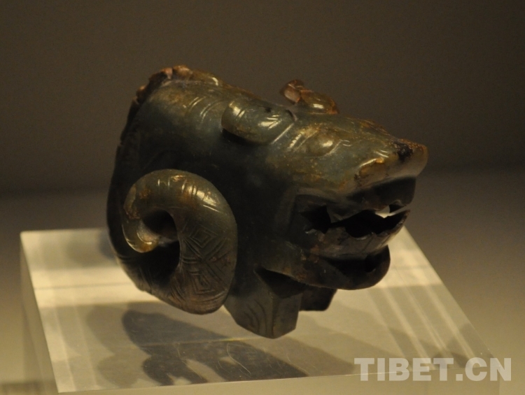 圖為安陽(yáng)殷墟婦好墓出土商代玉熊龍:包括熊頭蛇身加新生的蘑菇狀鹿角。攝于首都博物館早期中國(guó)特展