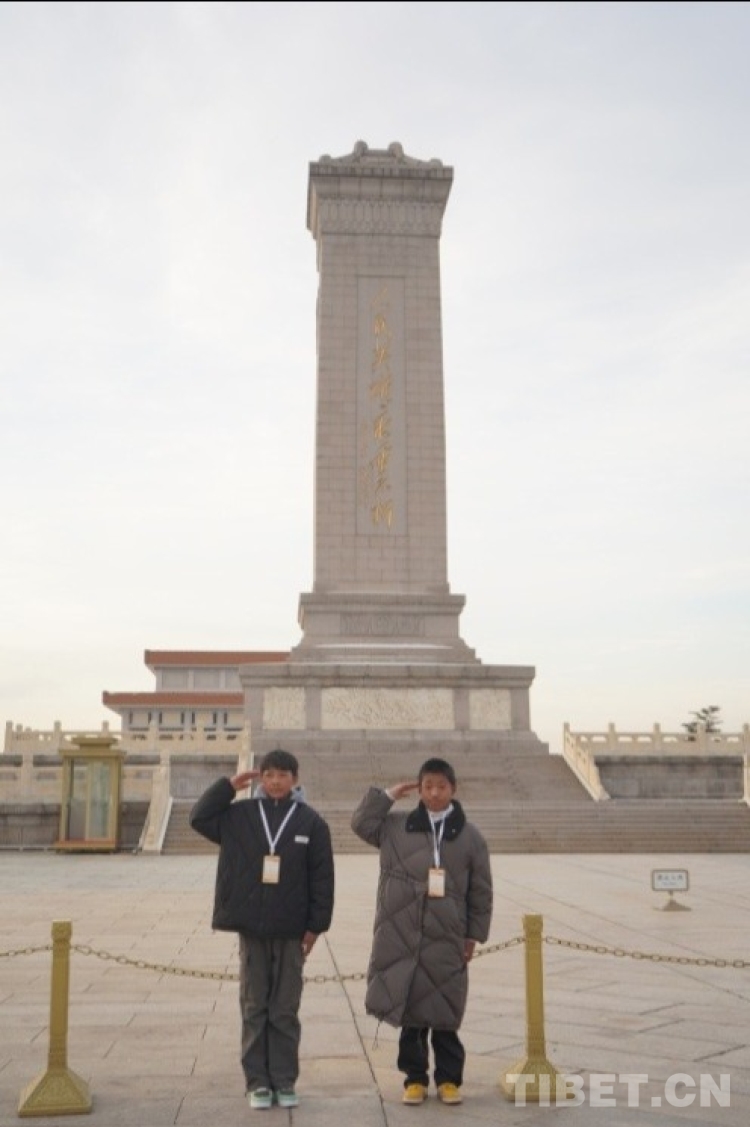 中國(guó)西藏網(wǎng)訊 “革命先輩們?yōu)榱俗屛覀冞^上好的生活,用自己的生命守護(hù)了我們,我要向他們敬禮!”來自西藏自治區(qū)日喀則市邊境縣學(xué)生赴北京參觀研學(xué)活動(dòng)的22名中學(xué)生中的扎西平措鄭重其事地向人民英雄紀(jì)念碑敬禮。