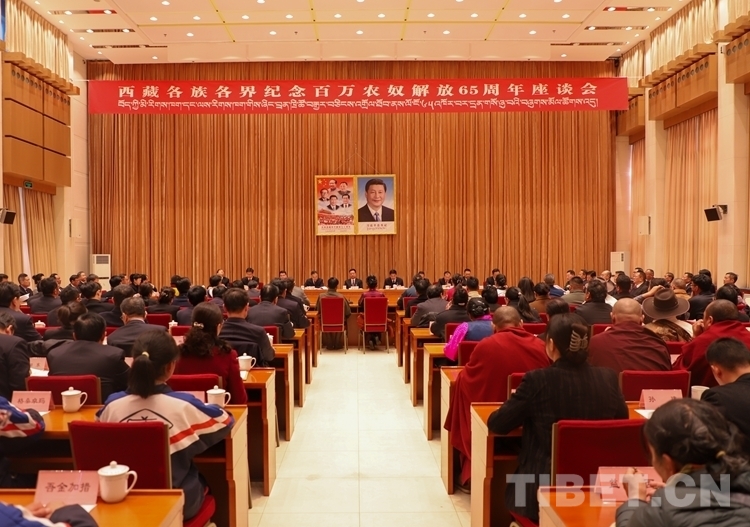 中國西藏網(wǎng)訊 3月28日,西藏各族各界紀(jì)念百萬農(nóng)奴解放65周年座談會在拉薩舉行。會上,翻身農(nóng)奴代表、愛國統(tǒng)戰(zhàn)人士及其后代代表、學(xué)生代表、黨外知識分子代表、宗教界代表等紛紛發(fā)言。