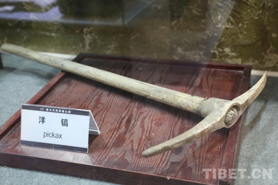 圖為格爾木將軍樓公園青藏公路紀念館內的展品——洋鎬