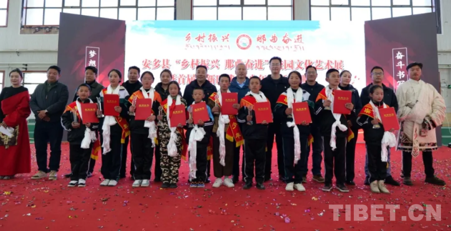 圖為安多縣“鄉(xiāng)村振興 那曲奮進”校園文化藝術展暨首屆“新時代好少年”頒獎典禮現場