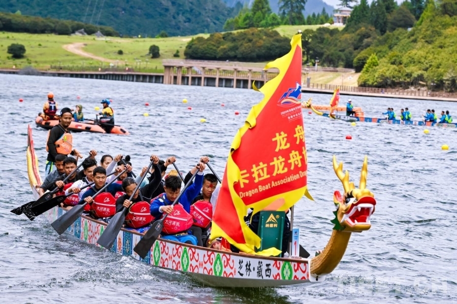 中國(guó)西藏網(wǎng)訊 6月10日,正值端午,2024年西藏林芝南迦巴瓦高原體育大會(huì)魯朗中尼高原龍舟友誼賽在魯朗扎塘魯措水域精彩上演。