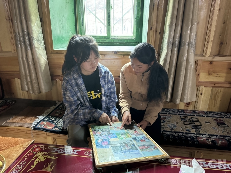 圖為洛絨友珍(左)和格絨擁金(右)翻看8年前在北京接受治療時拍攝的老照片 攝影:王智霖