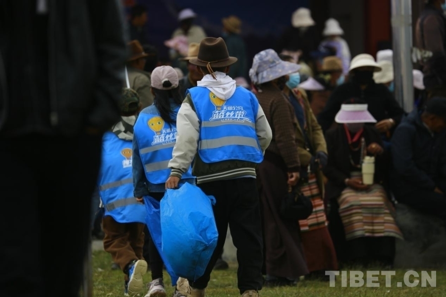 環(huán)保小衛(wèi)士們不怕臟不怕累,身著藍色小馬甲,手持清掃工具和垃圾袋“地毯式搜撿”,如同“藍精靈”在人群中穿梭,用實際行動感染著現(xiàn)場活動的所有參與者。在大家的共同努力下,經(jīng)過三個多小時的辛勤勞動,望果節(jié)現(xiàn)場的衛(wèi)生得到了明顯的改善。