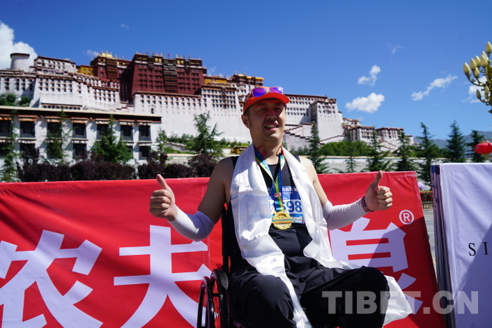 布達拉宮終點處人頭攢動,工作人員為每一位完賽選手獻上哈達、掛上獎牌,和選手們一起享受拉薩半程馬拉松挑戰(zhàn)完成的滿足與快樂。來自山東濟寧的任先振是本屆拉薩半程馬拉松唯一一位輪椅半程選手,他告訴記者,這一路他不僅沒有高反,且因為是自己參加過最高海拔的半程馬拉松而更加富有激情,在拉薩他感受到了許多來自藏族同胞的關(guān)心與溫暖,來到高原前他已經(jīng)報名了拉薩旅游團,他要去看看屬于雪域高原的美景。