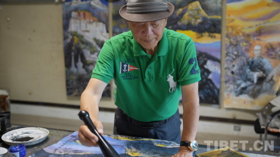 如果看過我的畫展,就能看到很多畫作都有藏族人民露出幸福燦爛的微笑。這是他們發(fā)自內(nèi)心的微笑,透露著深層次的幸福感。這種幸福感源于我們國家的統(tǒng)一和民族的團結,所以我作為一個藏族畫家,要用畫筆把這種感覺、精神和追求描繪表現(xiàn)出來。