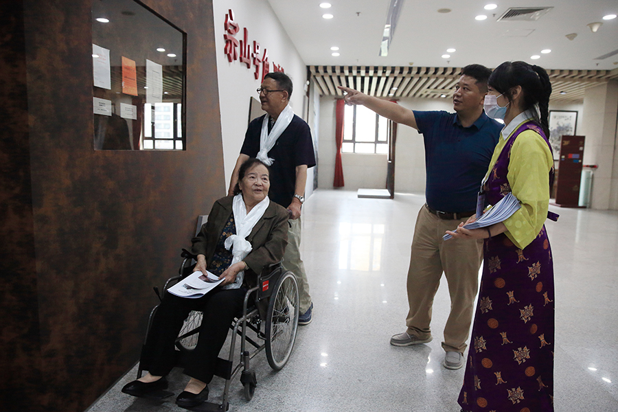 在展覽現(xiàn)場(chǎng),李國(guó)柱認(rèn)真聽取講解員的介紹,時(shí)不時(shí)和大家分享她當(dāng)年在江孜工作生活的情況。李國(guó)柱與丈夫陰法唐將軍的四個(gè)女兒中,兩個(gè)女兒在江孜出生,而且有三個(gè)人的名字都是用漢語藏語音意結(jié)合起的。二女兒起名“建白”,“白”是藏語西藏的音譯,取意“建設(shè)西藏”。三女兒起名“江沙”,“沙”在藏語里是新的意思,取意“建設(shè)新江孜”。小女兒起名“亞農(nóng)”,“亞”在藏語里是發(fā)展的意思,取意“發(fā)展西藏農(nóng)業(yè)”。