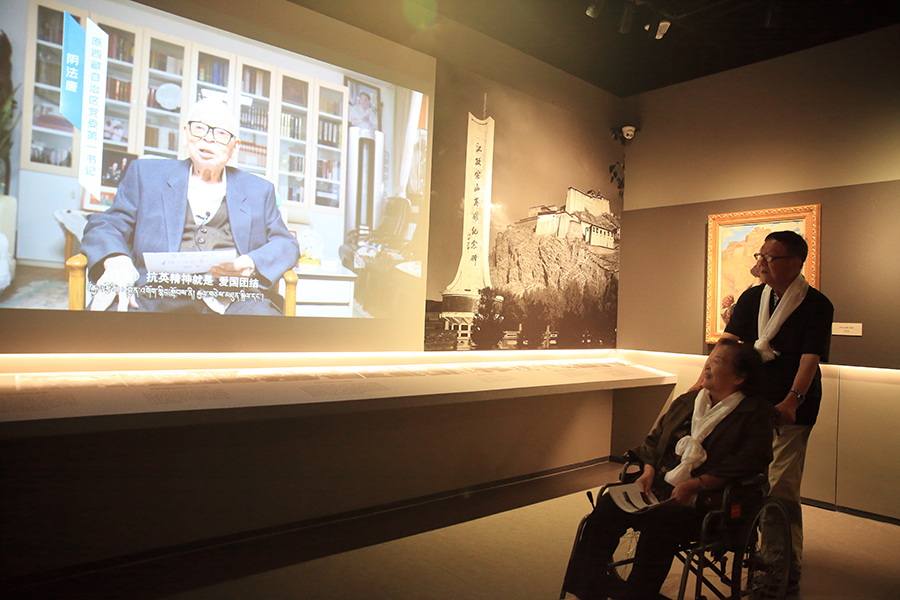中國(guó)西藏網(wǎng)訊 9月3日,首批進(jìn)軍西藏的女兵、92歲高齡的李國(guó)柱老人,在家人陪同下,來到中國(guó)藏學(xué)研究中心西藏文化博物館,參觀“宗山號(hào)角——紀(jì)念西藏江孜抗英保衛(wèi)戰(zhàn)120周年主題展”。