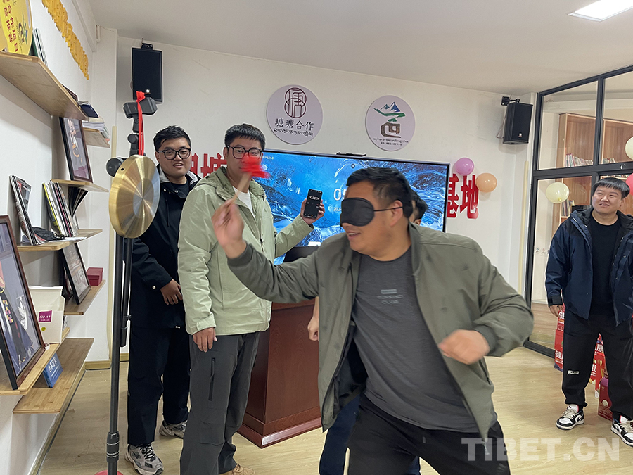 猜燈謎、投壺、蒙眼敲鑼等活動(dòng)相繼舉行,現(xiàn)場(chǎng)熱鬧非凡。投壺是中國古代一種博弈助興的游藝,專技人才們參與積極性極高,紛紛尋找角度,穩(wěn)住心態(tài),瞄準(zhǔn)壺口投射,投中者贏得陣陣掌聲;蒙眼敲鑼的環(huán)節(jié)將本次活動(dòng)推向了高潮,大家自由結(jié)對(duì),接力在蒙住雙眼的條件下,僅憑借隊(duì)友的引導(dǎo)敲響銅鑼。