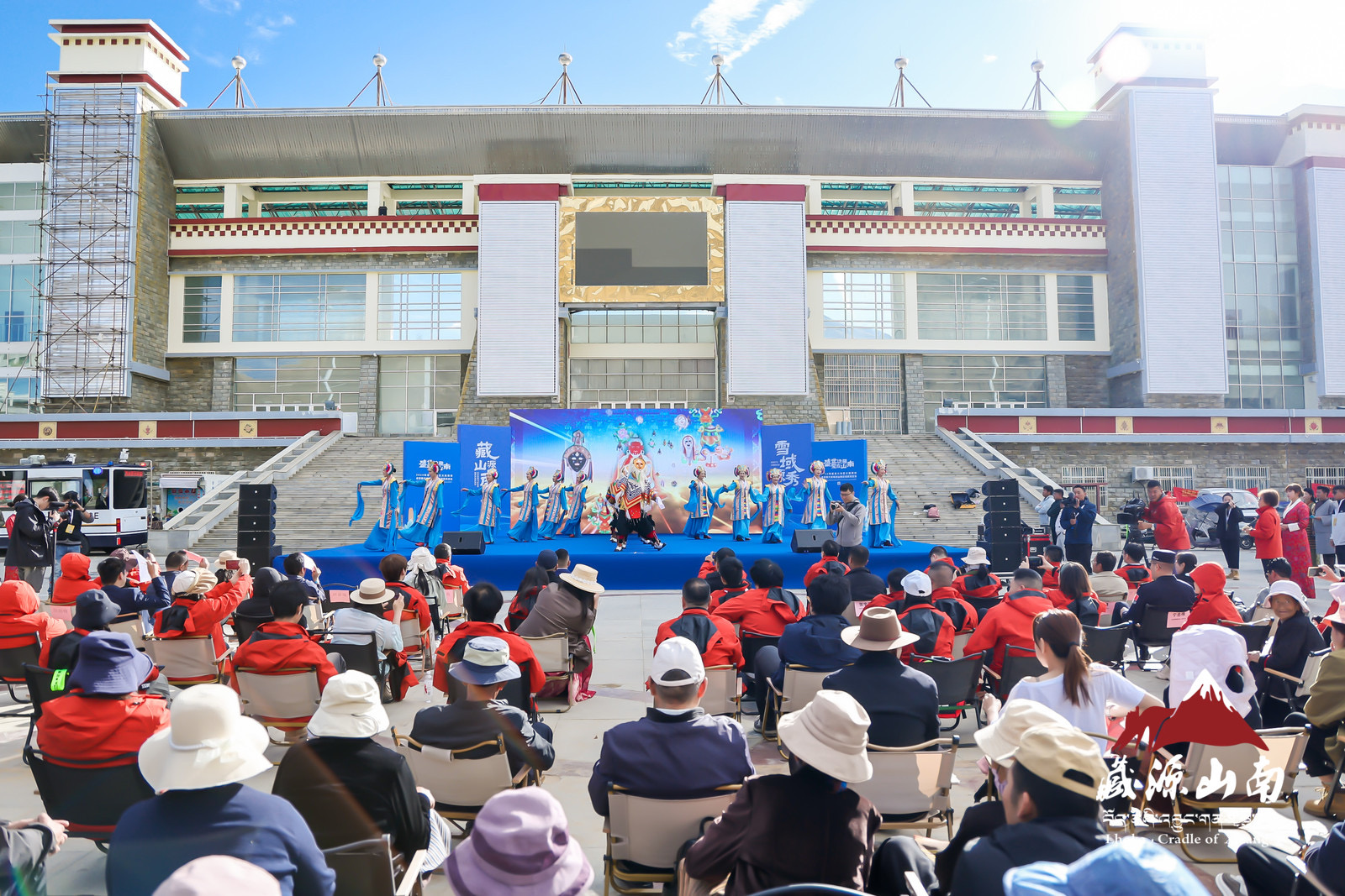 圖為啟動儀式上嘉賓們欣賞藏戲表演