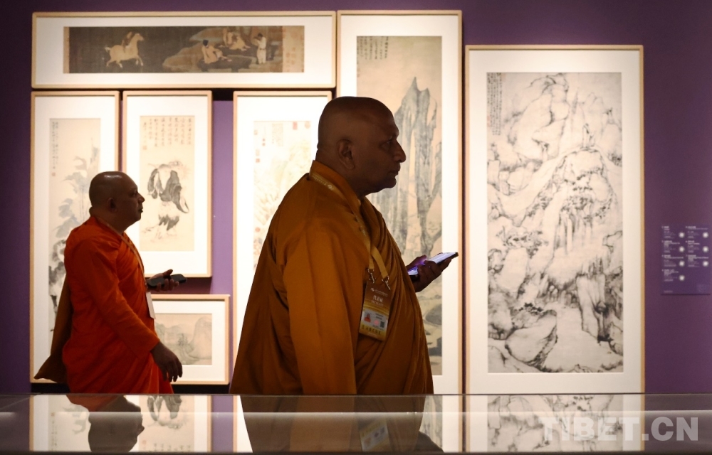 圖為與會(huì)者參觀“和合共生——世界佛教文化藝術(shù)展”