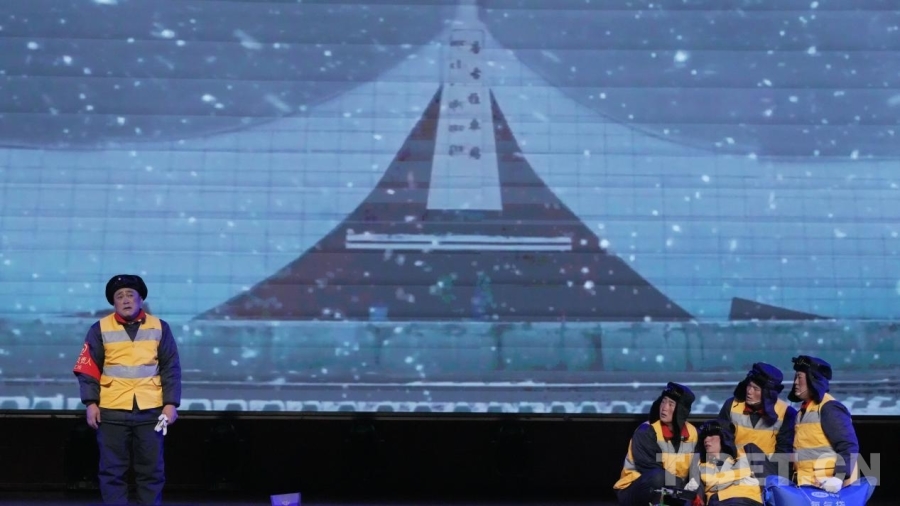 報告會主要以勞模、先進典型、工匠等元素為創(chuàng)作題材,分為“鏖戰(zhàn)昆侖育精神”“歲月如歌寫傳奇”“風雨同舟堅守路”“一枝一葉總關(guān)情”“奔跑追夢向復(fù)興”“擊鼓催征再出發(fā)”六個章節(jié),主持人聲情并茂地講述著修建青藏鐵路的光輝歷史和筑路工人克服種種艱難險阻的奮斗故事,期間通過穿插情景劇《豐碑》《雪戰(zhàn)風火山》和歌曲《天路》《青藏線上來安家》以及詩朗誦《我們的青藏鐵路》等表演,全方位展現(xiàn)了青藏鐵路人“挑戰(zhàn)極限、勇創(chuàng)一流”的青藏鐵路精神。