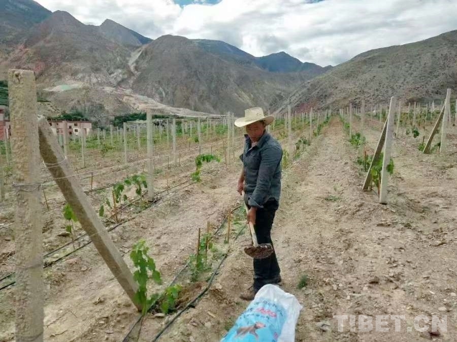 在風(fēng)景如畫的八宿縣林卡鄉(xiāng)孜嘎村,有一片占地面積200畝的葡萄種植基地,也是昌都市海拔最高的葡萄種植基地。2016年,八宿縣計劃建立葡萄種植基地,來自芒康縣納西民族鄉(xiāng)的次成江措在項(xiàng)目中標(biāo)后成為該基地的負(fù)責(zé)人。在次成江措的家鄉(xiāng)芒康,種植葡萄已經(jīng)有200多年的歷史。從小耳濡目染,使他成為遠(yuǎn)近聞名的葡萄種植專家。剛接到這個項(xiàng)目時,由于對八宿縣地理環(huán)境不甚了解,次成江措內(nèi)心并沒有十足的把握。隨后,他從家鄉(xiāng)帶來優(yōu)質(zhì)葡萄品種“黑珍珠”,驚喜地發(fā)現(xiàn)得益于八宿縣海拔較高、紫外線充足、降雨量較少的優(yōu)勢條件,“黑珍珠”的生長情況超出了他的預(yù)期,甚至不需要使用農(nóng)藥?! ?/p>