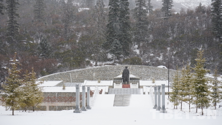 資料圖:大雪中雀兒山腳下的張福林烈士陵園