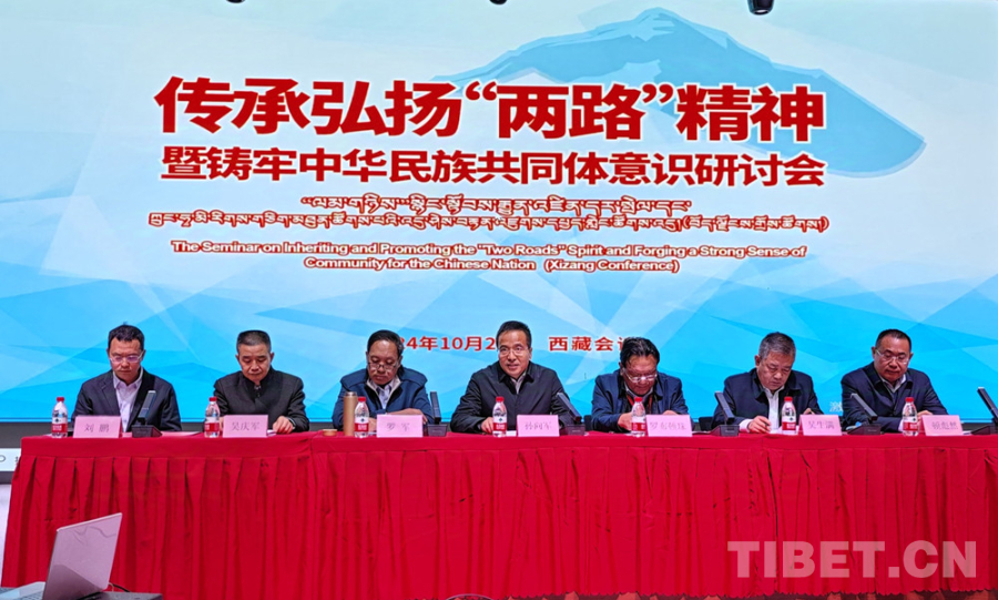 中國西藏網(wǎng)訊 10月24日,傳承弘揚(yáng)“兩路”精神暨鑄牢中華民族共同體意識研討會在西藏自治區(qū)拉薩市開幕。此次研討會由中國西藏信息中心、西藏延安精神研究會主辦,西藏自治區(qū)社會科學(xué)院、西藏技師學(xué)院協(xié)辦。來自西藏自治區(qū)黨委、西藏社科院、中國藏學(xué)研究中心、西藏大學(xué)、青海民族大學(xué)等單位的相關(guān)負(fù)責(zé)人、專家學(xué)者及西藏技師學(xué)院師生300余人參加了開幕式。(中國西藏網(wǎng) 記者/王茜 陳浩力 巫姍燕 蘭周加)