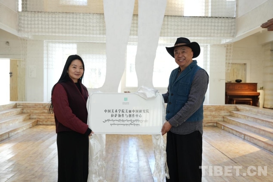 中國西藏網(wǎng)訊 11月14日,中國美術(shù)學(xué)院美麗中國研究院拉薩協(xié)作與創(chuàng)作中心掛牌儀式在介觀藝術(shù)中心舉行,中國美術(shù)學(xué)院美麗中國研究院副院長汪莎與介觀藝術(shù)中心創(chuàng)始人徐應(yīng)龍共同揭牌。