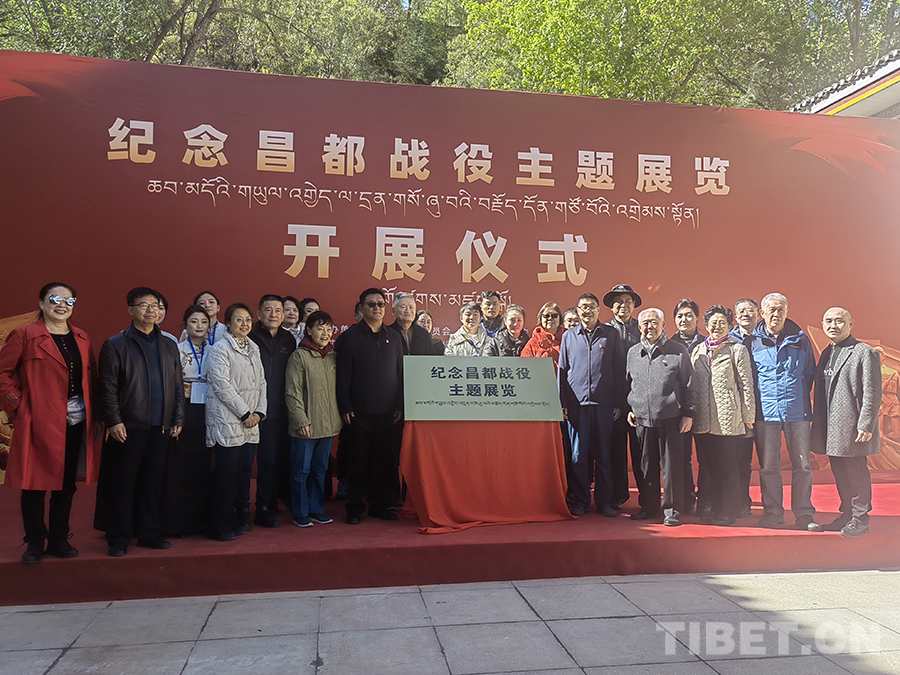 圖為參加紀(jì)念昌都戰(zhàn)役主題展覽開展儀式的嘉賓合影