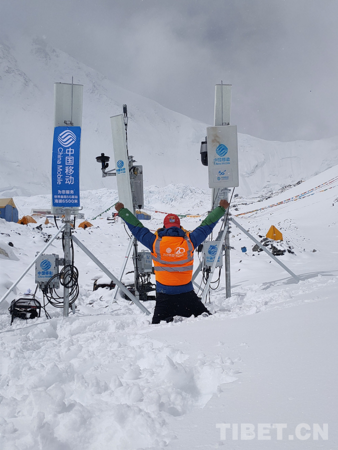 圖為2020年4月全球海拔最高的5G基站投入使用,5G信號(hào)首次“登頂”世界之巔,為珠峰高程測(cè)量全程提供通信服務(wù)。圖片由西藏自治區(qū)通信管理局提供