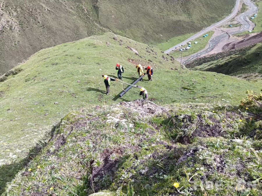 圖為工作人員正在雪域高原架設(shè)通信鐵塔?!D片由西藏自治區(qū)通信管理局提供