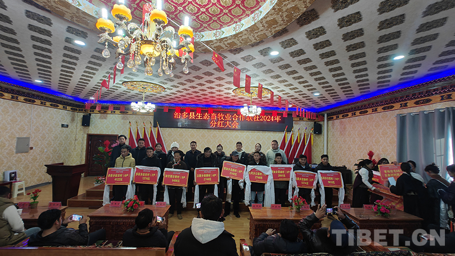 中國(guó)西藏網(wǎng)訊 12月26日,青海省玉樹(shù)藏族自治州治多縣生態(tài)畜牧業(yè)合作聯(lián)社(以下簡(jiǎn)稱合作聯(lián)社)舉行了2024年分紅大會(huì),為3401戶監(jiān)測(cè)戶分紅60.594萬(wàn)元,治多縣農(nóng)牧和科技局、5鄉(xiāng)1鎮(zhèn)和20個(gè)行政村的負(fù)責(zé)人及入社股民代表參加。