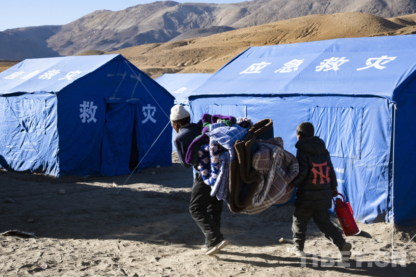 圖為受災(zāi)群眾正陸續(xù)搬入防寒帳篷 攝影:趙振宇