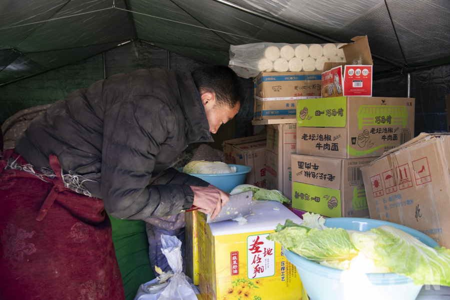 圖為在安置點的僧尼正在準(zhǔn)備當(dāng)日午飯,安置點內(nèi)受災(zāi)僧尼各項物資充足 攝影:趙振宇
