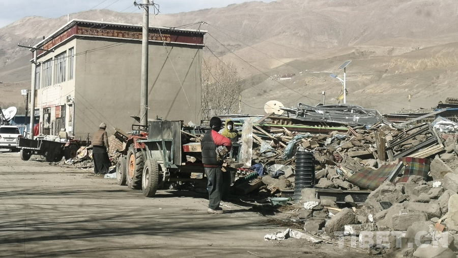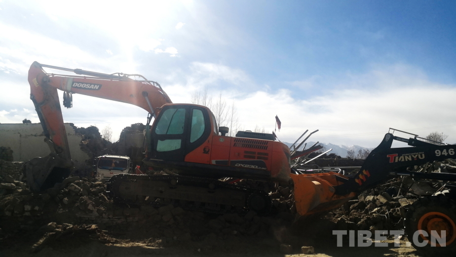 圖為地震重災(zāi)區(qū)西藏自治區(qū)日喀則市定日縣長所鄉(xiāng)除險現(xiàn)場,畫面中右側(cè)的危房、建筑已完成除險 攝影:劉莉