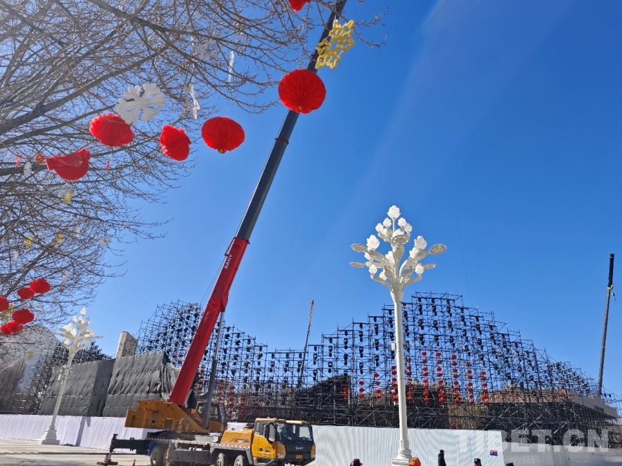 圖為布達(dá)拉宮廣場(chǎng)的春晚分會(huì)場(chǎng)布置現(xiàn)場(chǎng) 攝影:趙婧茹