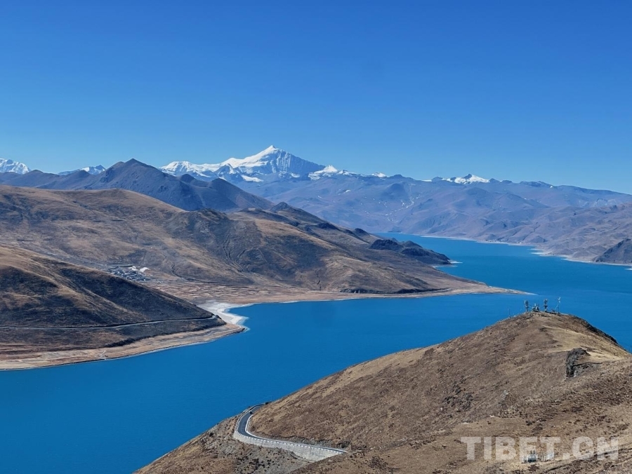 圖為湛藍(lán)的羊卓雍錯(cuò)和乃欽康桑雪山交相輝映,構(gòu)成一幅美麗動(dòng)人的畫卷。攝影:德吉卓瑪