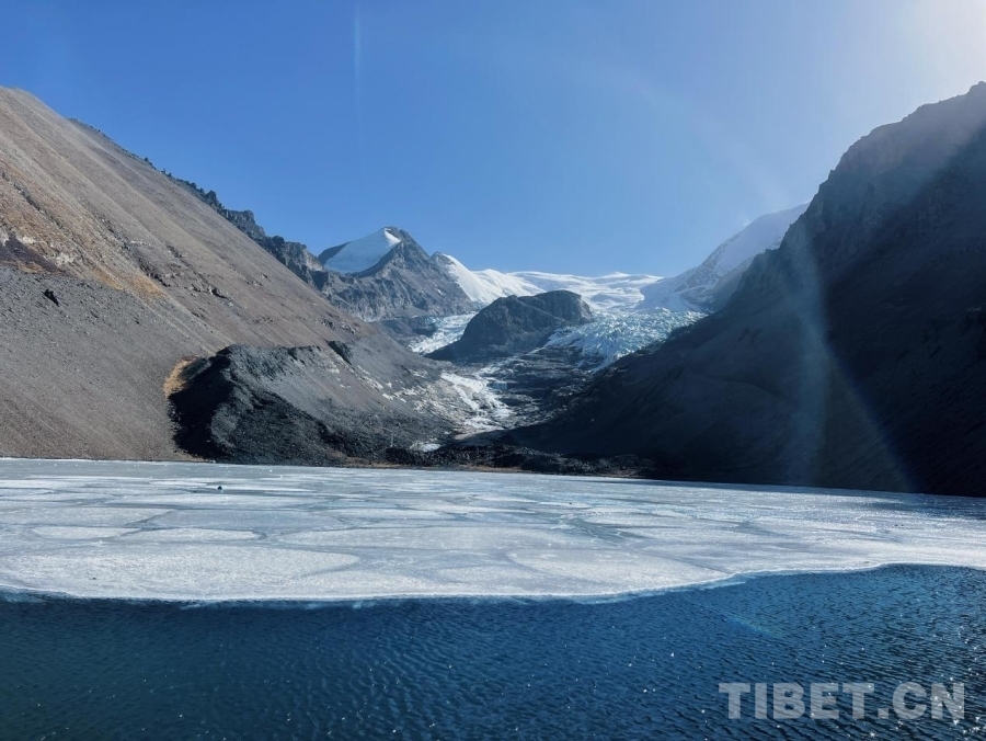 圖為冬日的恰央錯(cuò)湖面和冰川、雪山融為一體的景觀。攝影:德吉卓瑪