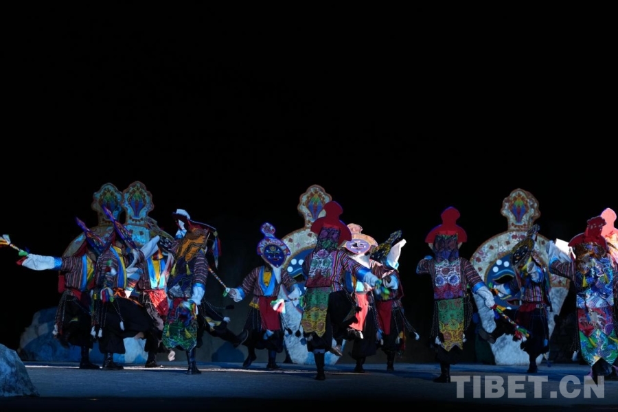 圖為《文成公主》大型實景劇中群眾演員表演藏戲。攝影:德吉卓瑪