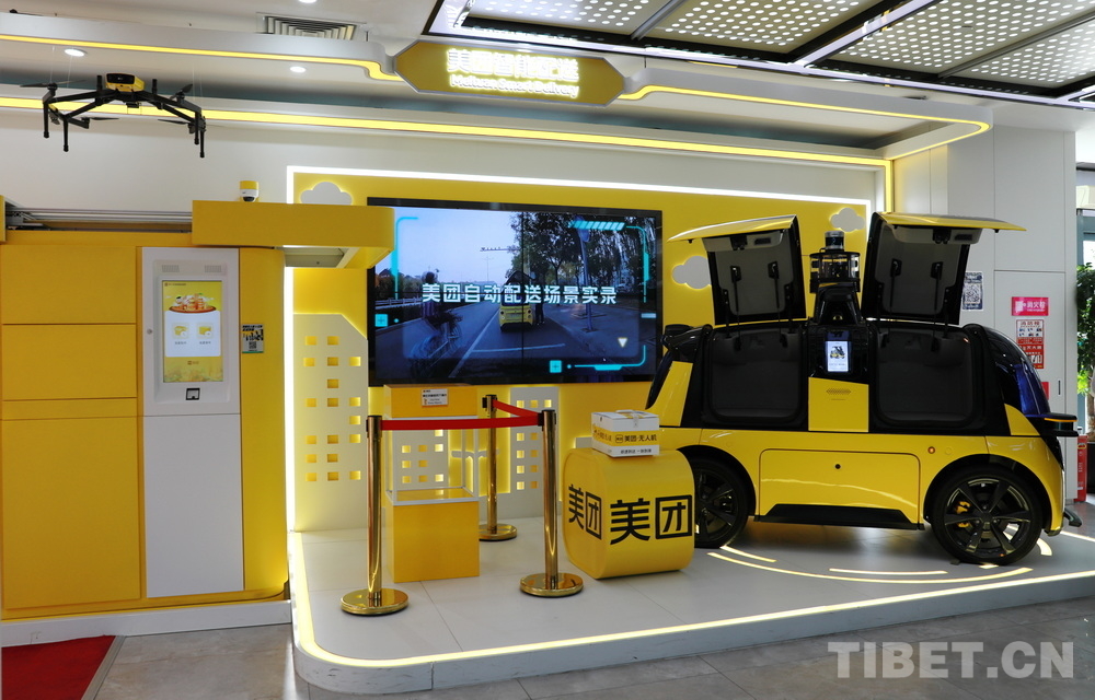 圖為美團(tuán)綜合指揮中心展示的智能配送設(shè)備 攝影:劉莉