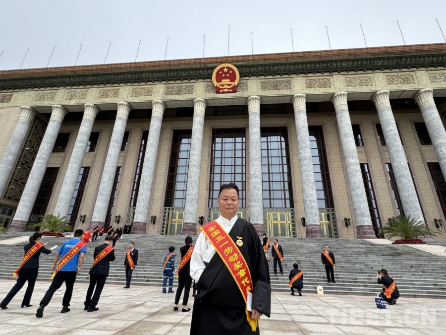 圖為達娃在人民大會堂前留影 受訪者供圖