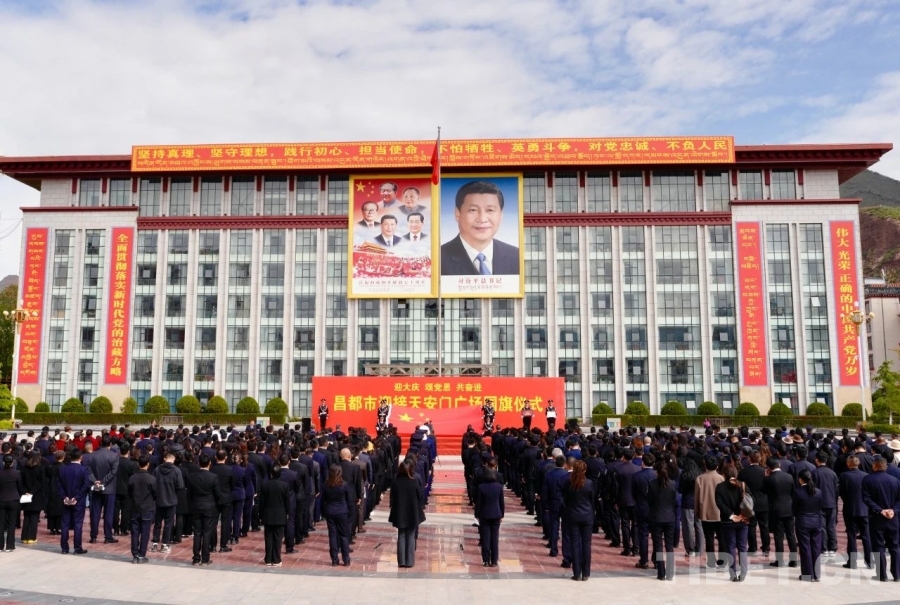 圖為昌都市迎接天安門廣場國旗儀式現(xiàn)場 攝影:群旦次仁