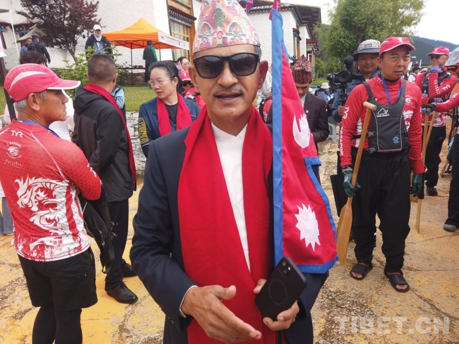 6月15日,“2025年西藏林芝南迦巴瓦高原體育大會——中尼高原龍舟友誼賽”在西藏林芝魯朗開賽。圖為尼泊爾龍舟協(xié)會會長錢德拉·波·達哈接受中國西藏網(wǎng)采訪 攝影:趙釗