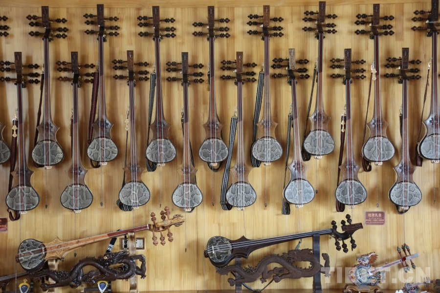 作為“堆諧之鄉(xiāng)”拉孜縣的代表性樂器,扎念琴制作已有數(shù)百年歷史。合作社負責人頓加介紹,一把純手工扎念琴需選用楊木做共鳴箱、花梨木制琴桿,經(jīng)過刨削、雕鏤、蒙皮等20余道工序,一個人耗時6天左右方能完成?!扒兕^雕馬象征吉祥,背面‘巴絡(luò)'凸紋既美觀又防滑,這些都是祖輩傳下的智慧?!比缃瘢@項非遺技藝通過“致富帶頭人+合作社+農(nóng)戶”模式,年生產(chǎn)扎念琴超500把,帶動社員人均年收入達4.5萬元。