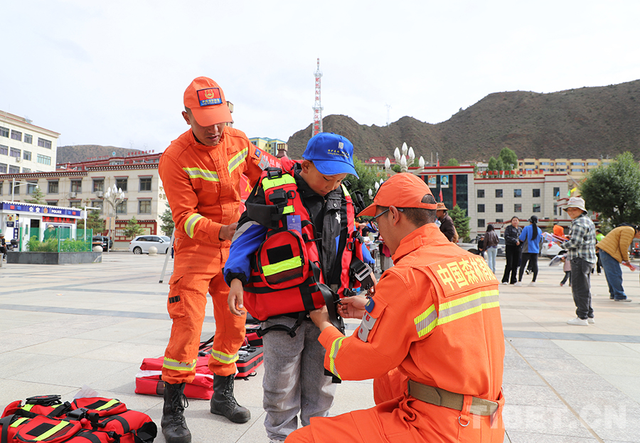 “這是我們最新配發(fā)的液壓擴(kuò)張器和液壓剪切器,主要用于打開救援通道……”在裝備展示區(qū),消防員土登旺堆正在為群眾詳細(xì)講解液壓剪切器、液壓頂撐器、生命探測儀等各類救援裝備的特點(diǎn)和使用方法,并邀請群眾進(jìn)行親身體驗(yàn)。