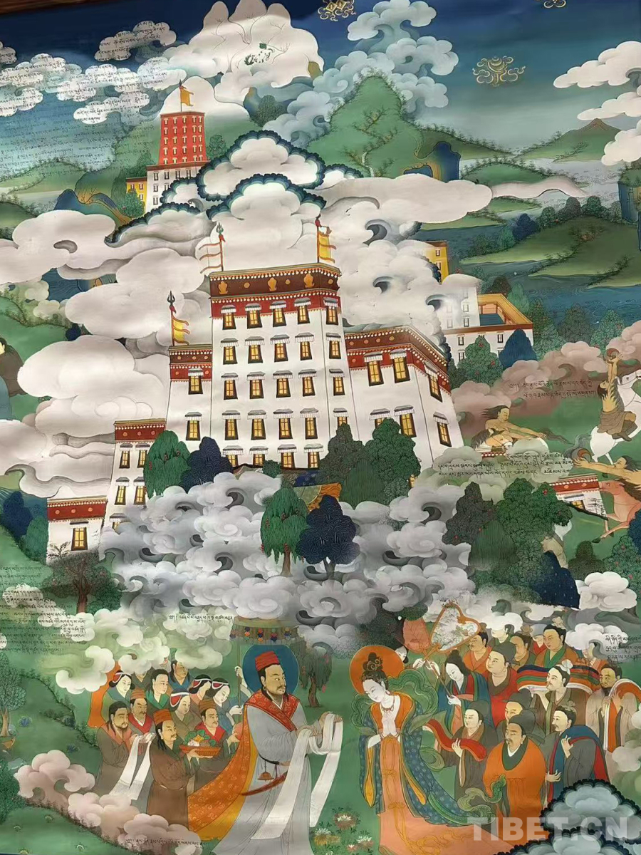 圖為唐卡《吐蕃贊普世系大唐卡金子明鏡》(局部細(xì)節(jié))