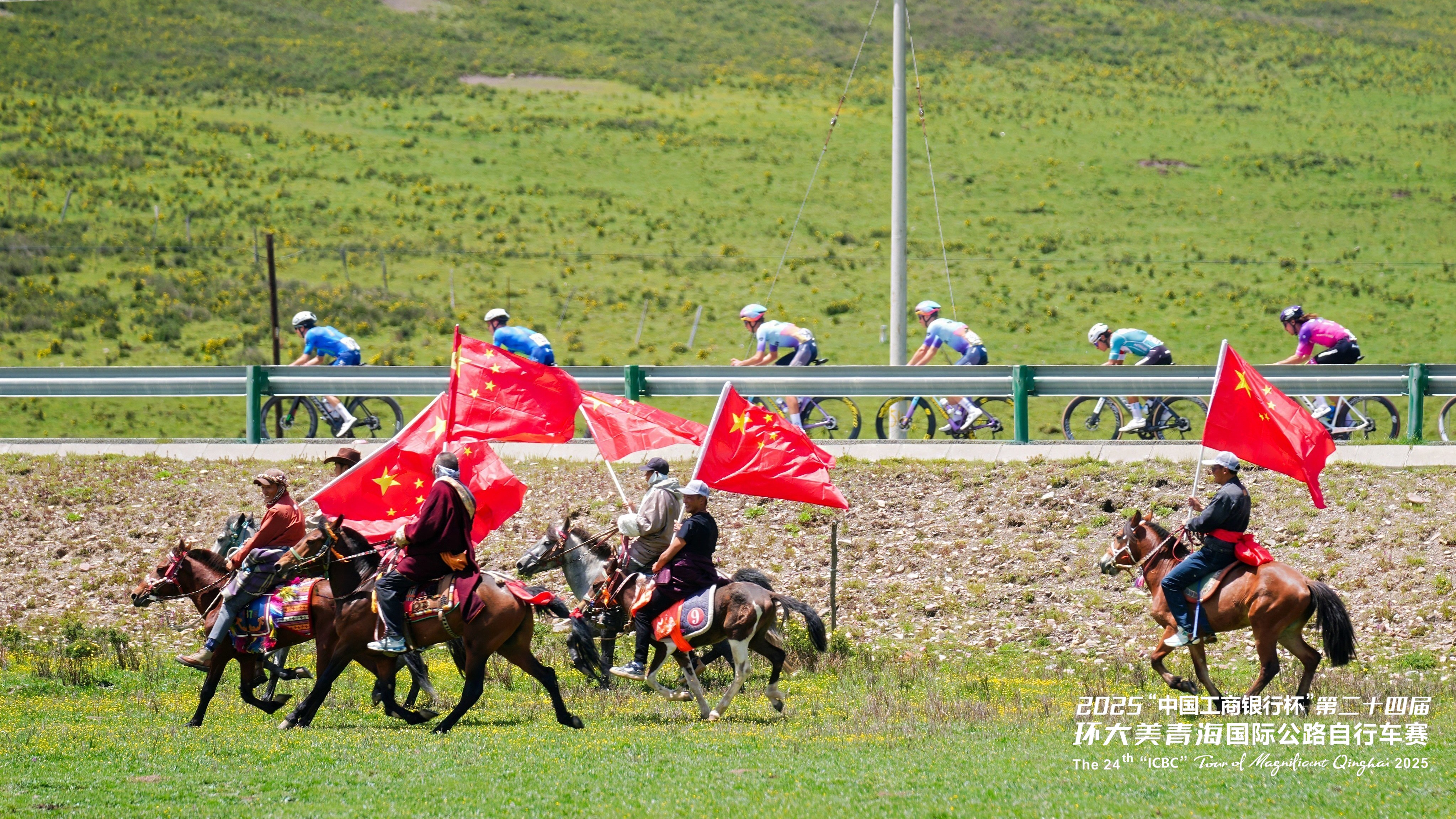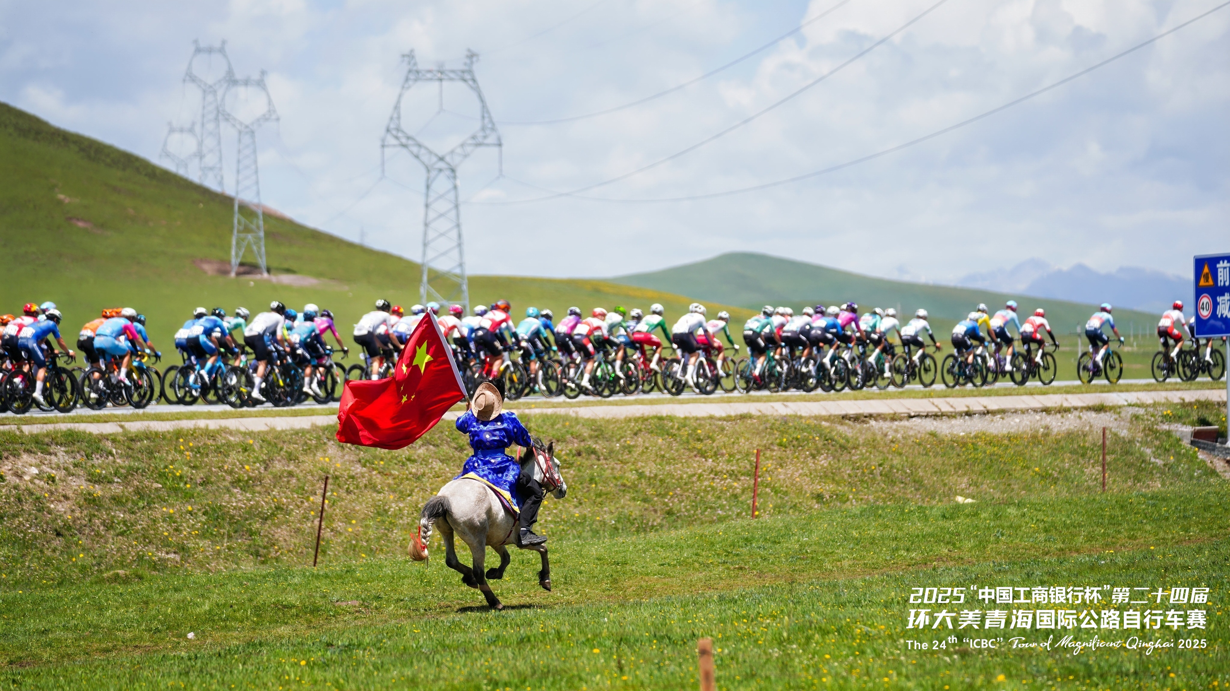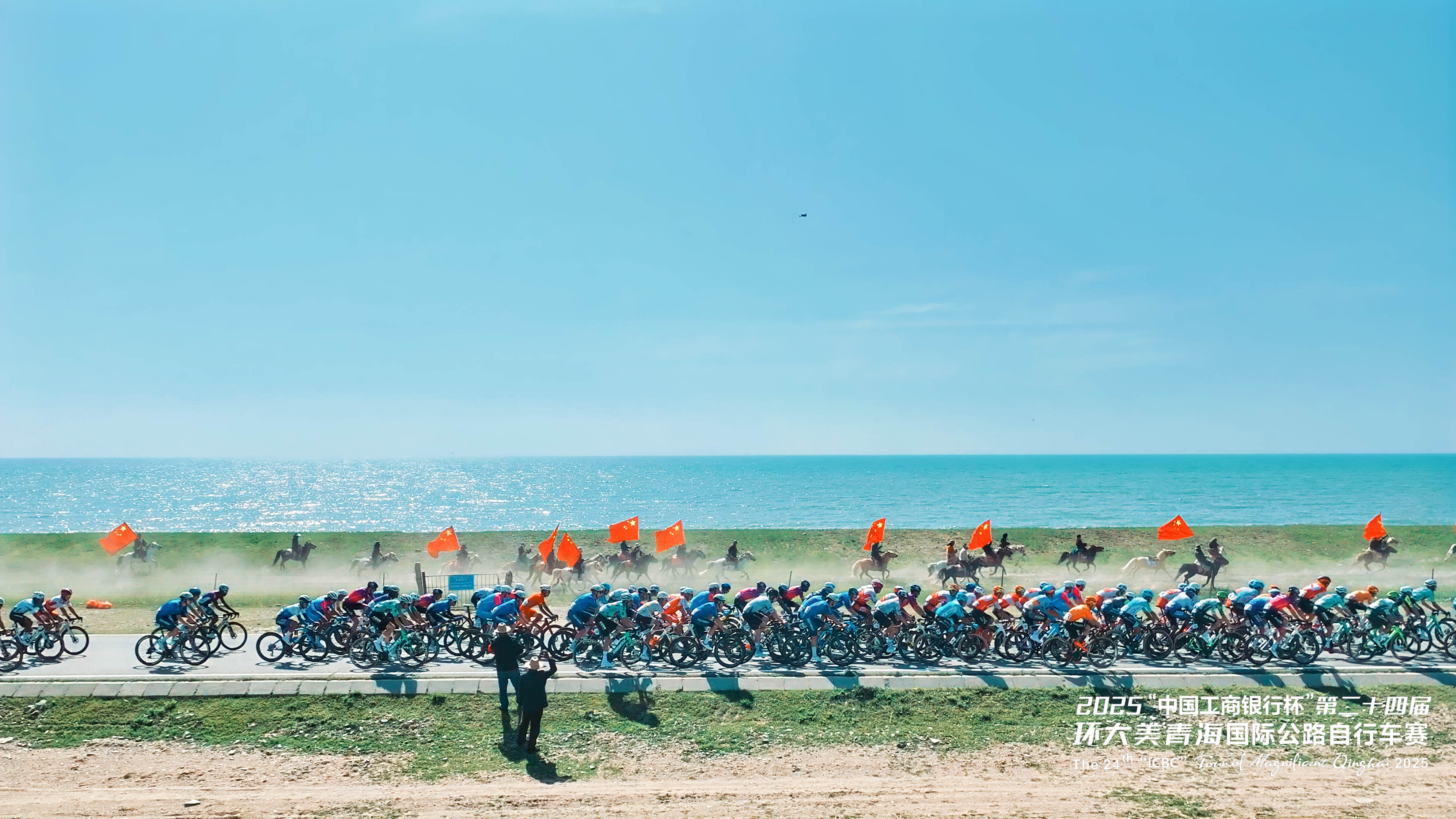 在青海湖畔,牧民們手擎國旗策馬飛馳,與選手們并肩競逐。這一場景也致敬了全球頂尖自行車賽事環(huán)法自行車賽中自行車與馬匹同行的經(jīng)典畫面——騎馬承載著人類悠久的出行記憶,自行車則象征著現(xiàn)代的綠色出行理念,此刻,在青海湖畔,傳統(tǒng)與現(xiàn)代完美交融,共同譜寫著人與自然和諧共處的動(dòng)人篇章。
