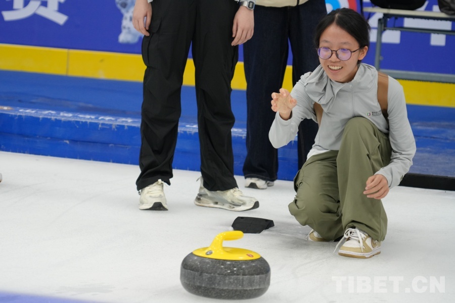 圖為曲文苑在體驗(yàn)冰壺運(yùn)動 攝影:馮重霖
